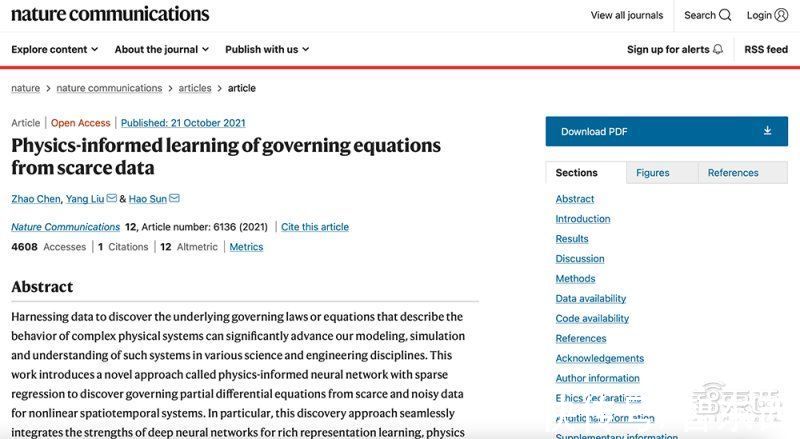 今年10月,孙浩团队的论文《从稀缺的数据中学习物理控制方程》(Physics-informed learning of governing equations from scarce data)发表于国际学术顶刊Nature Communications。